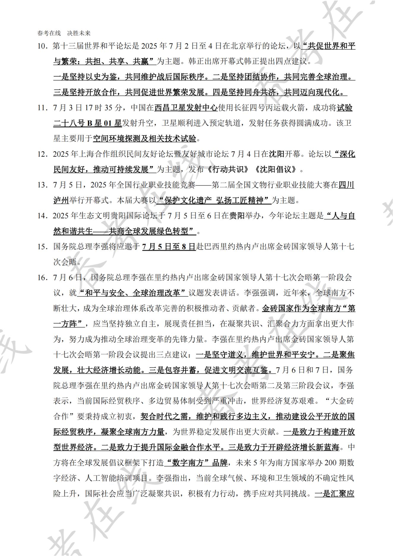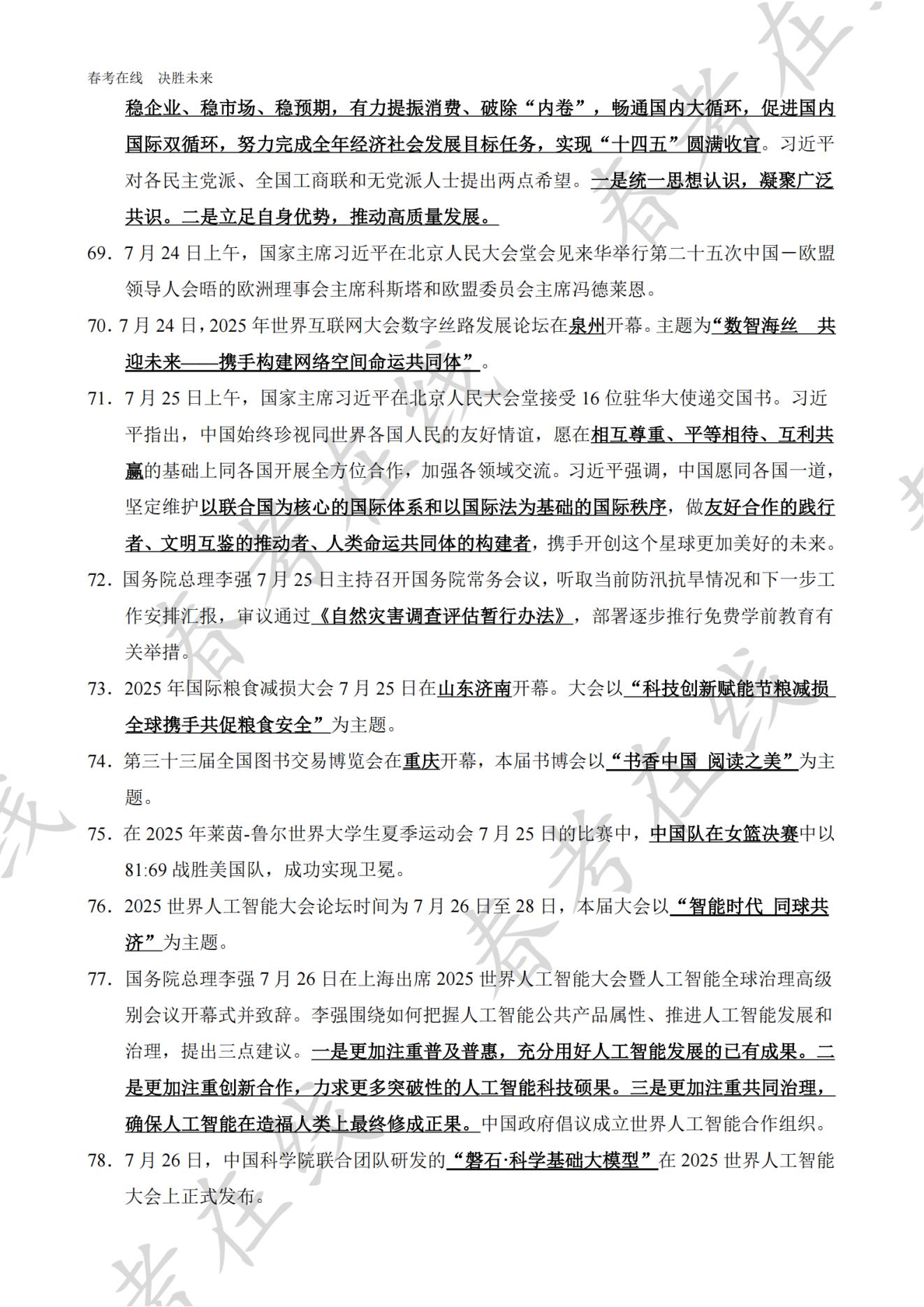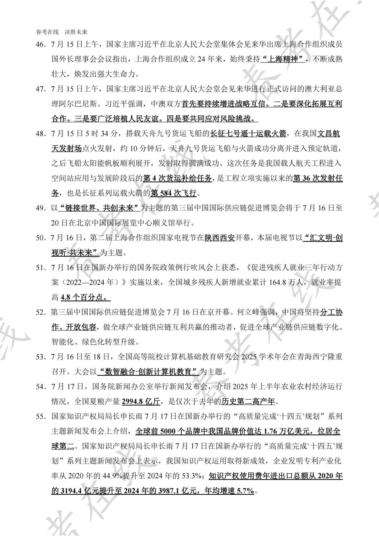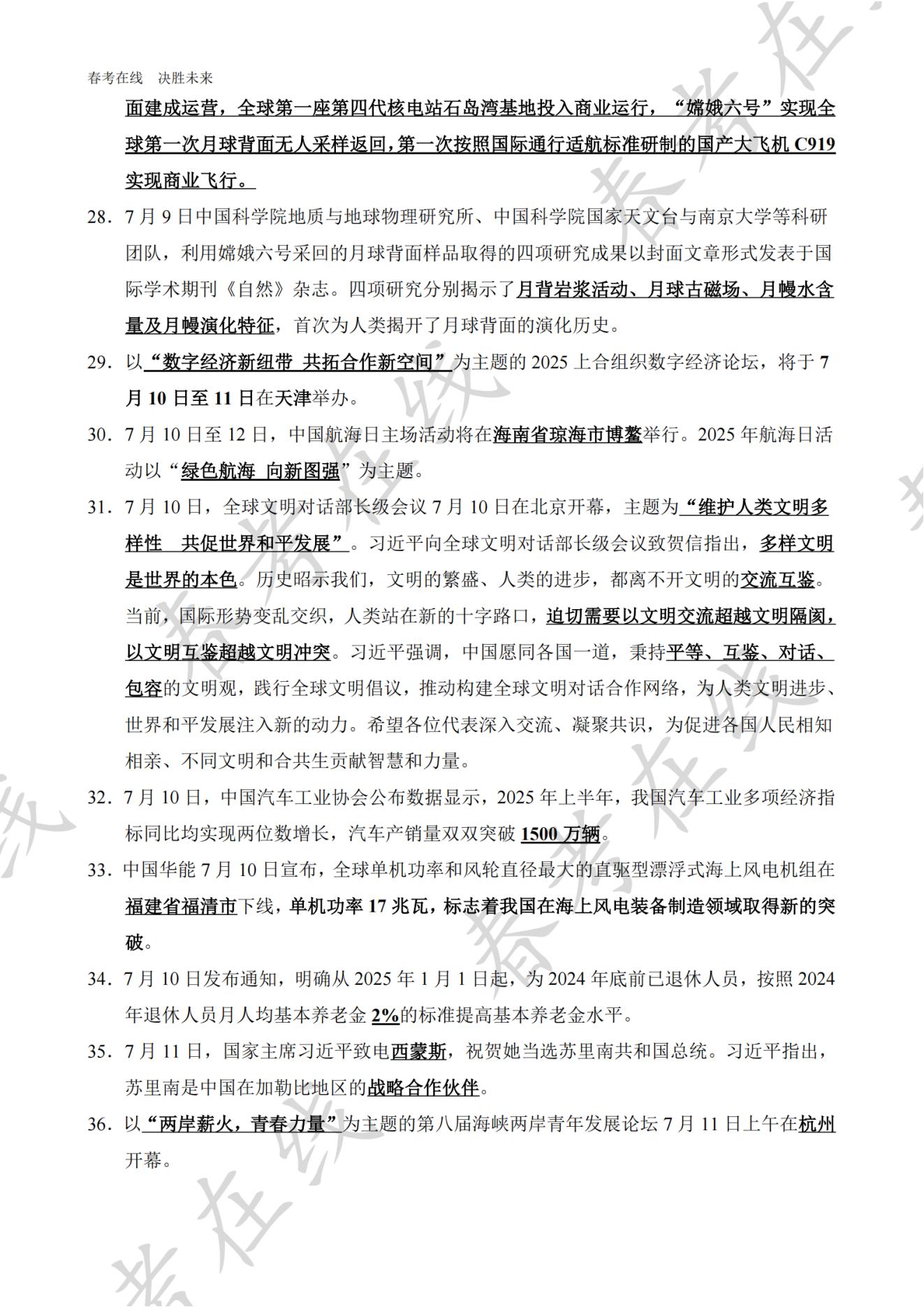 2025天津市高职分类考试(春季高考)7月时事政治