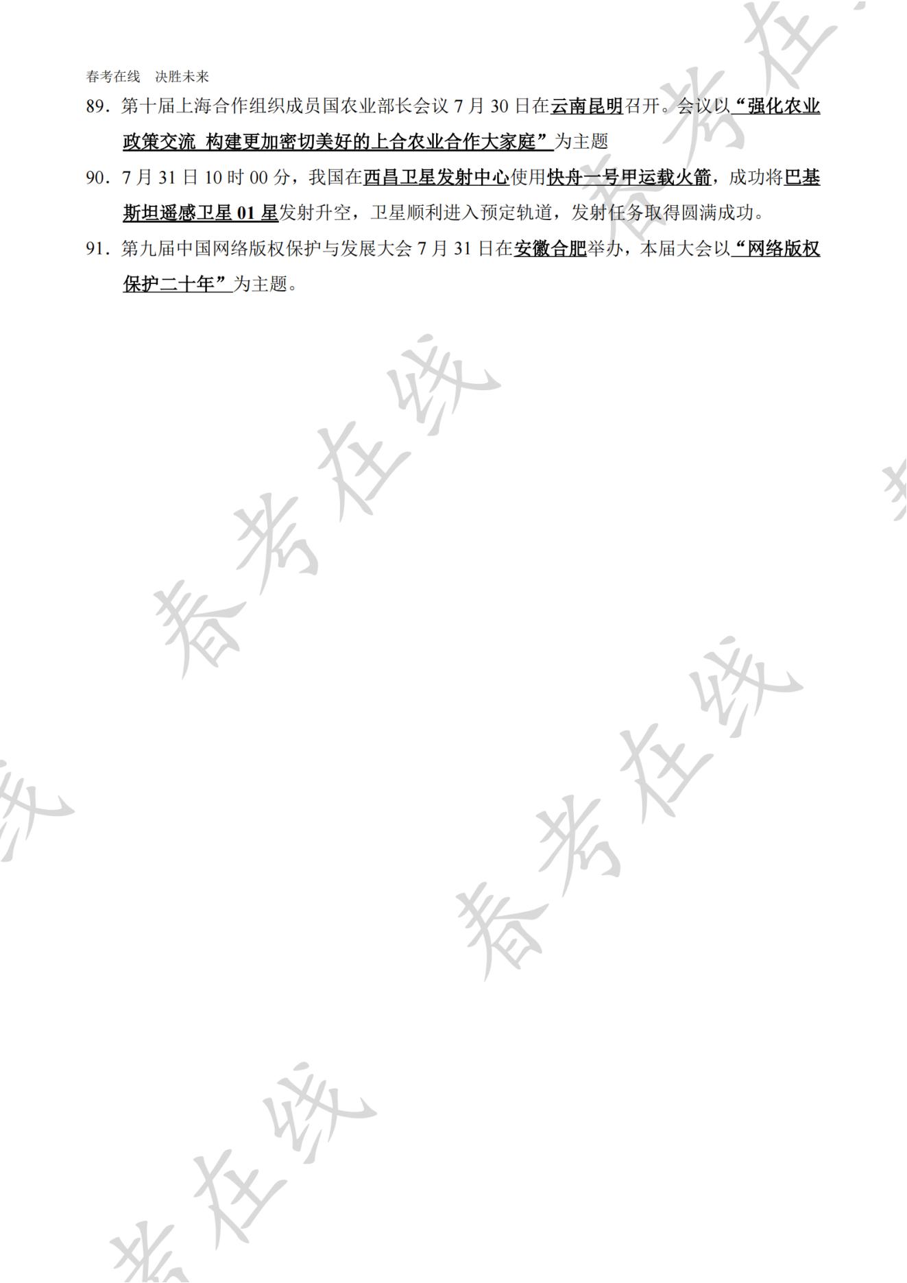 2025天津市高职分类考试(春季高考)8月时事政治